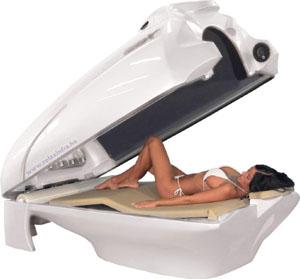 A nagyméretû belsõ térben akár egy 200 kg-os ember is kényelmesen elfér. A tágas kabin elegendõ teret biztosít a kényelmes elhelyezkedéséhez. A készülék felsõ része bármikor egy könnyed mozdulattal felnyitható, akár kezelés közben, belülrõl is.